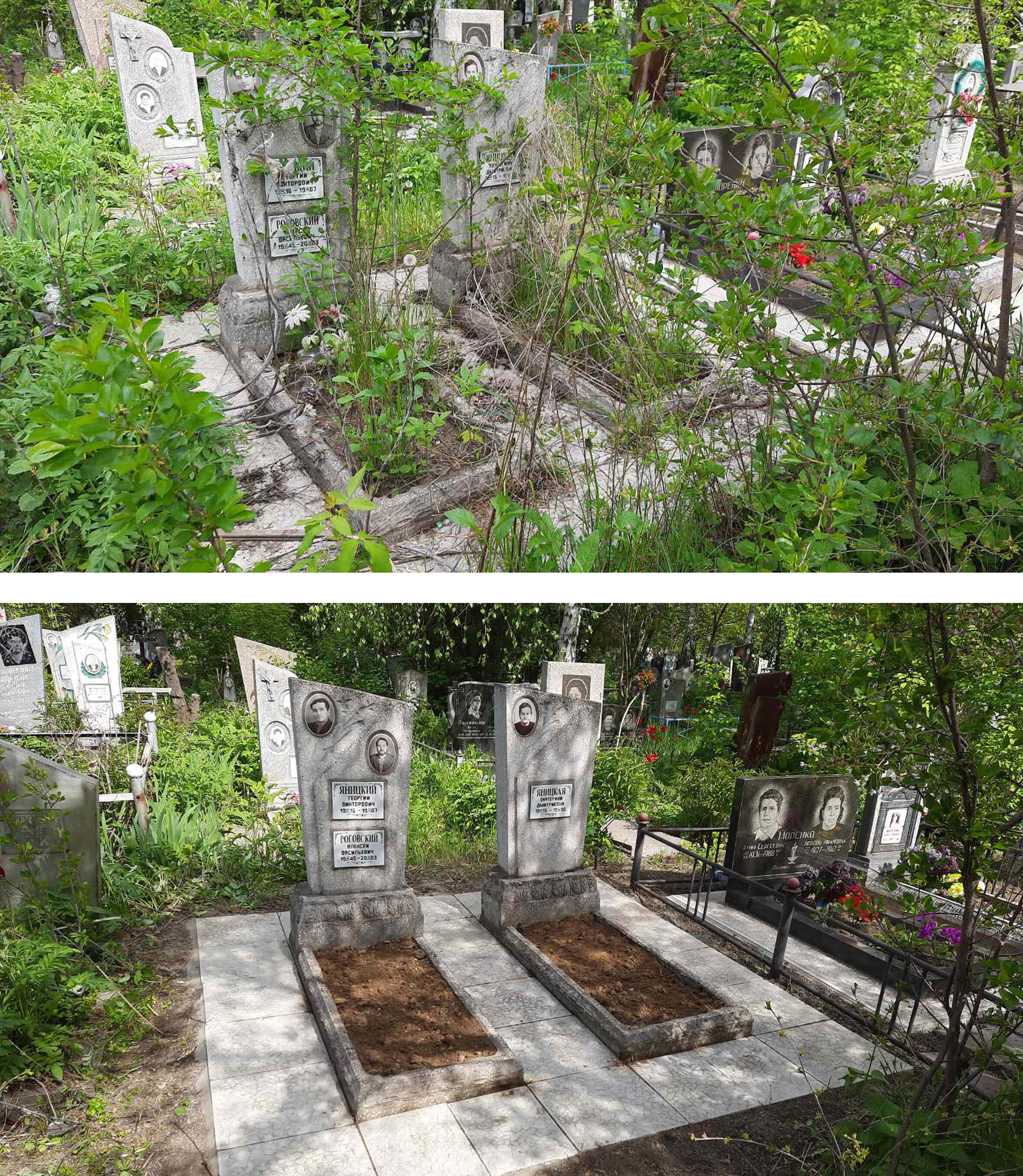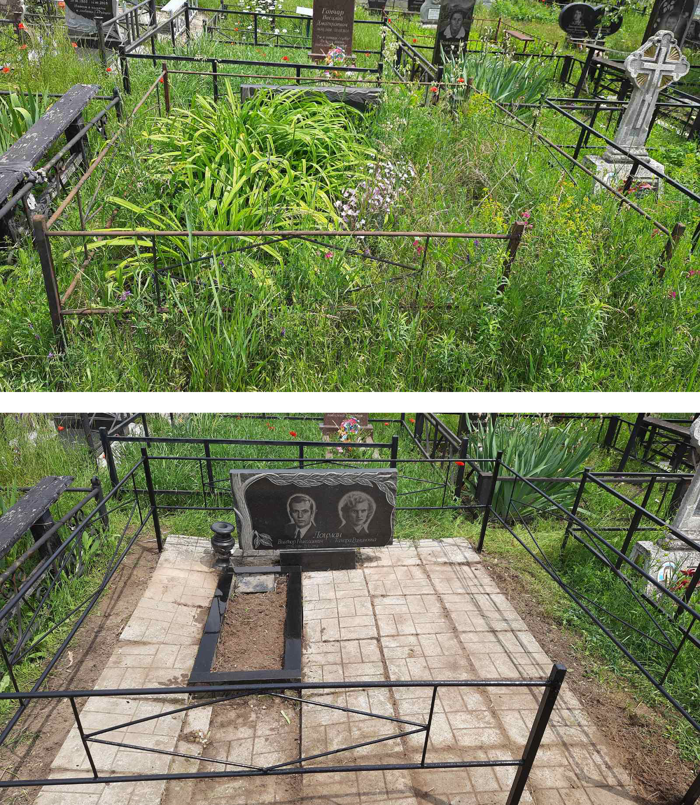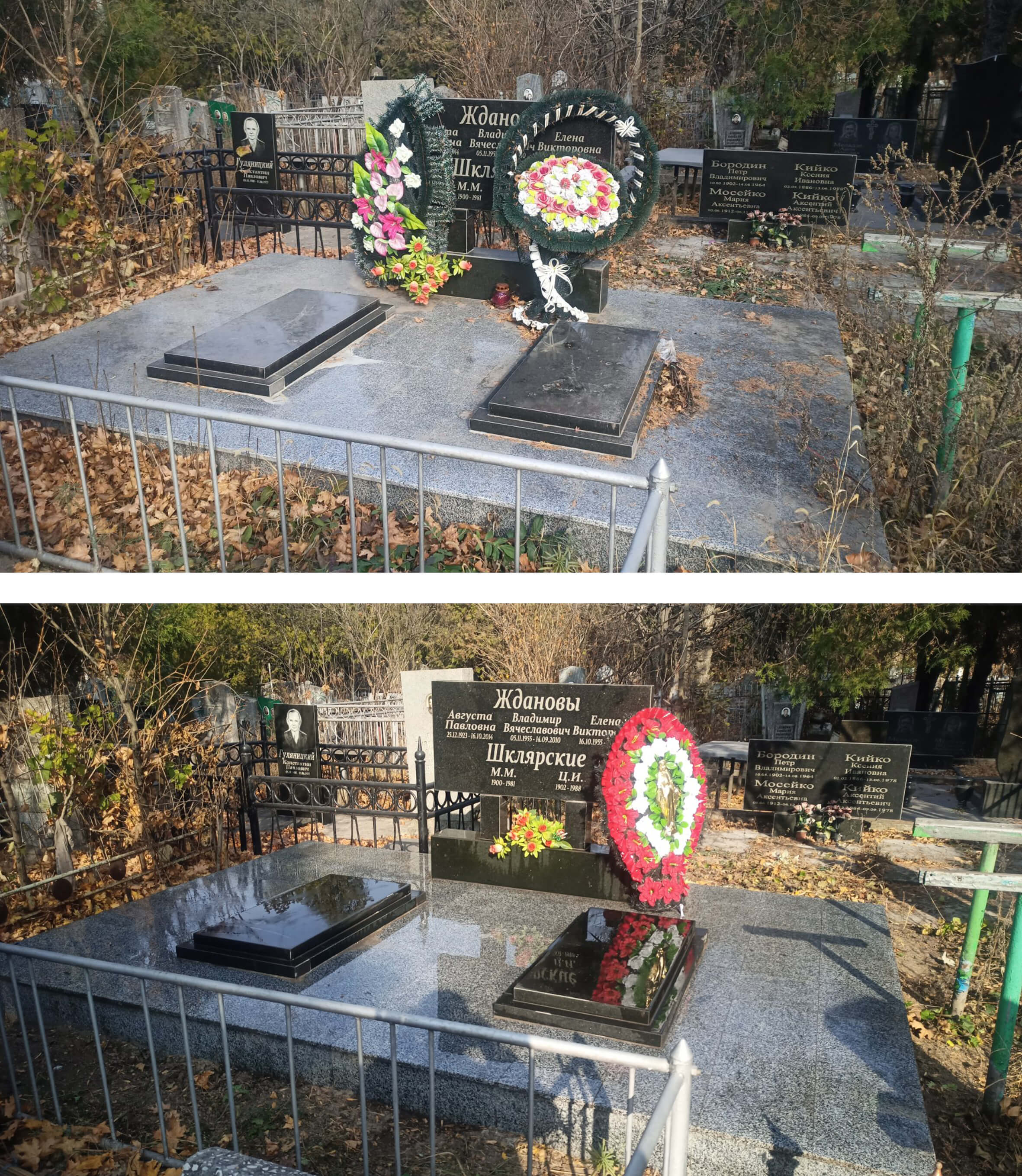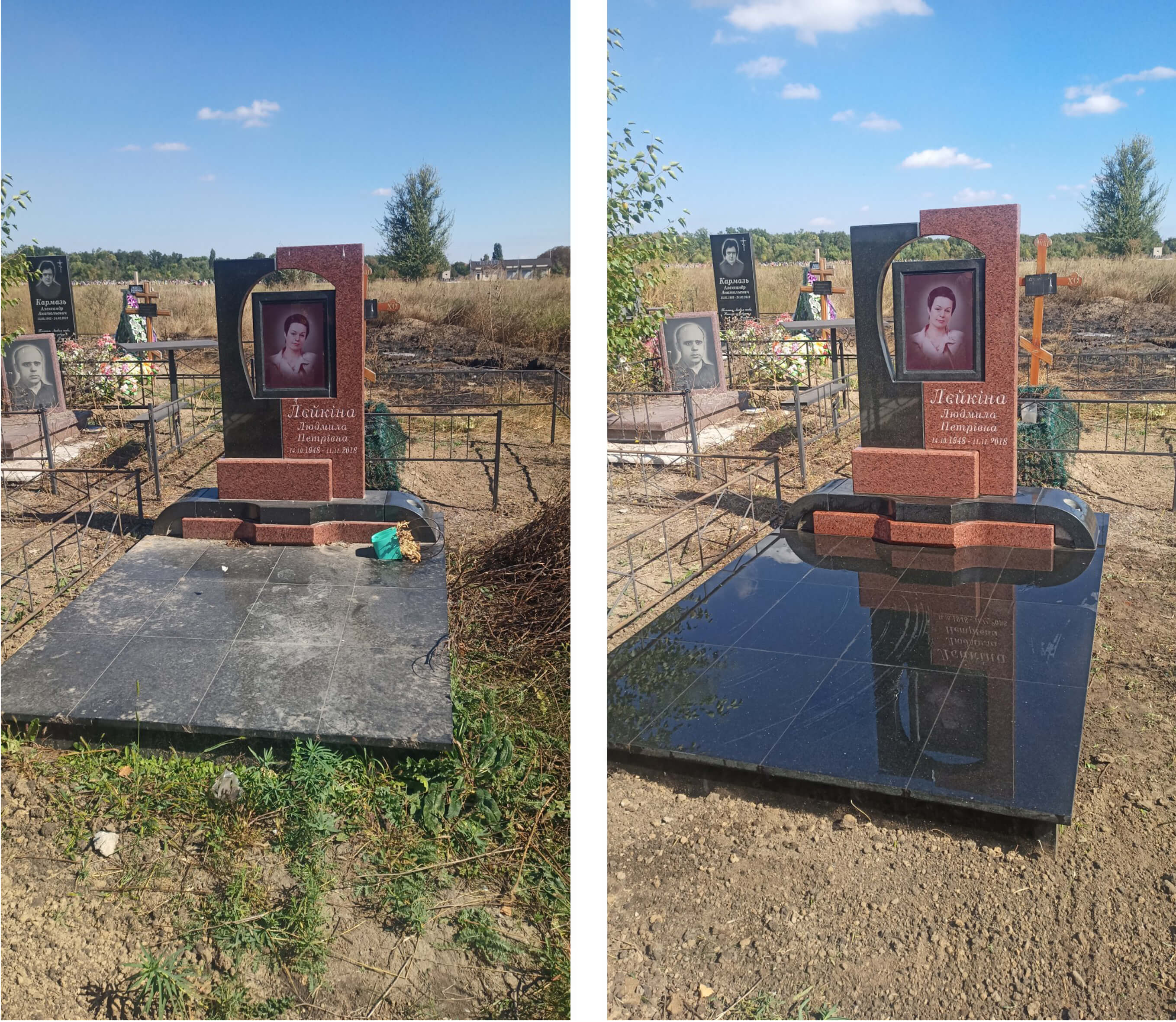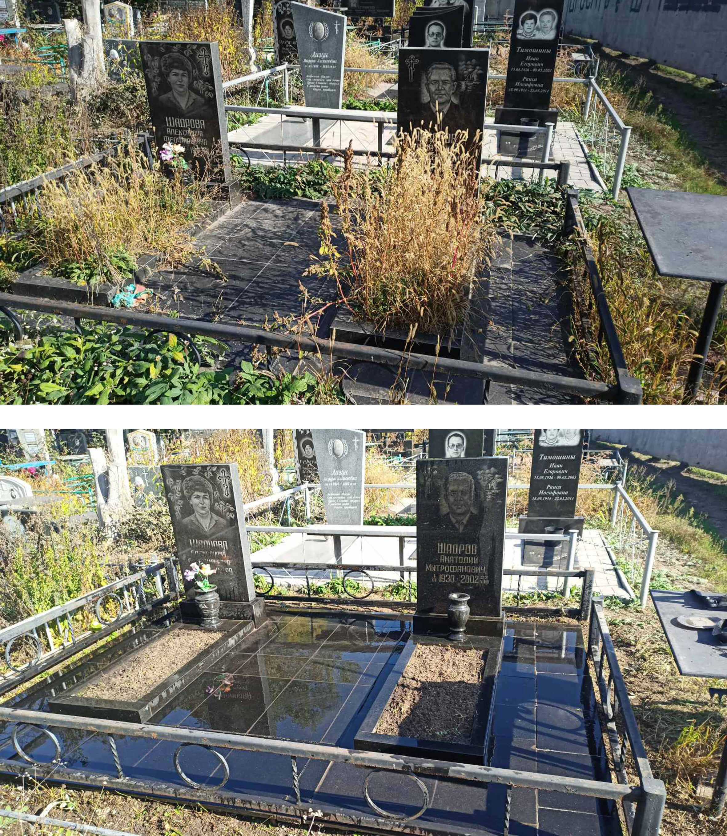- Ввели обязательные фото отчеты до уборки могилы и после. Это говорит о высоком стандарте обслуживания, придает процессу прозрачность, а заказчикам уверенность. Эти детальные отчеты стали неотъемлемой частью наших услуг, обеспечивая клиентов свидетельством о профессиональной и бережной заботе о памятниках и захоронениях их близких;